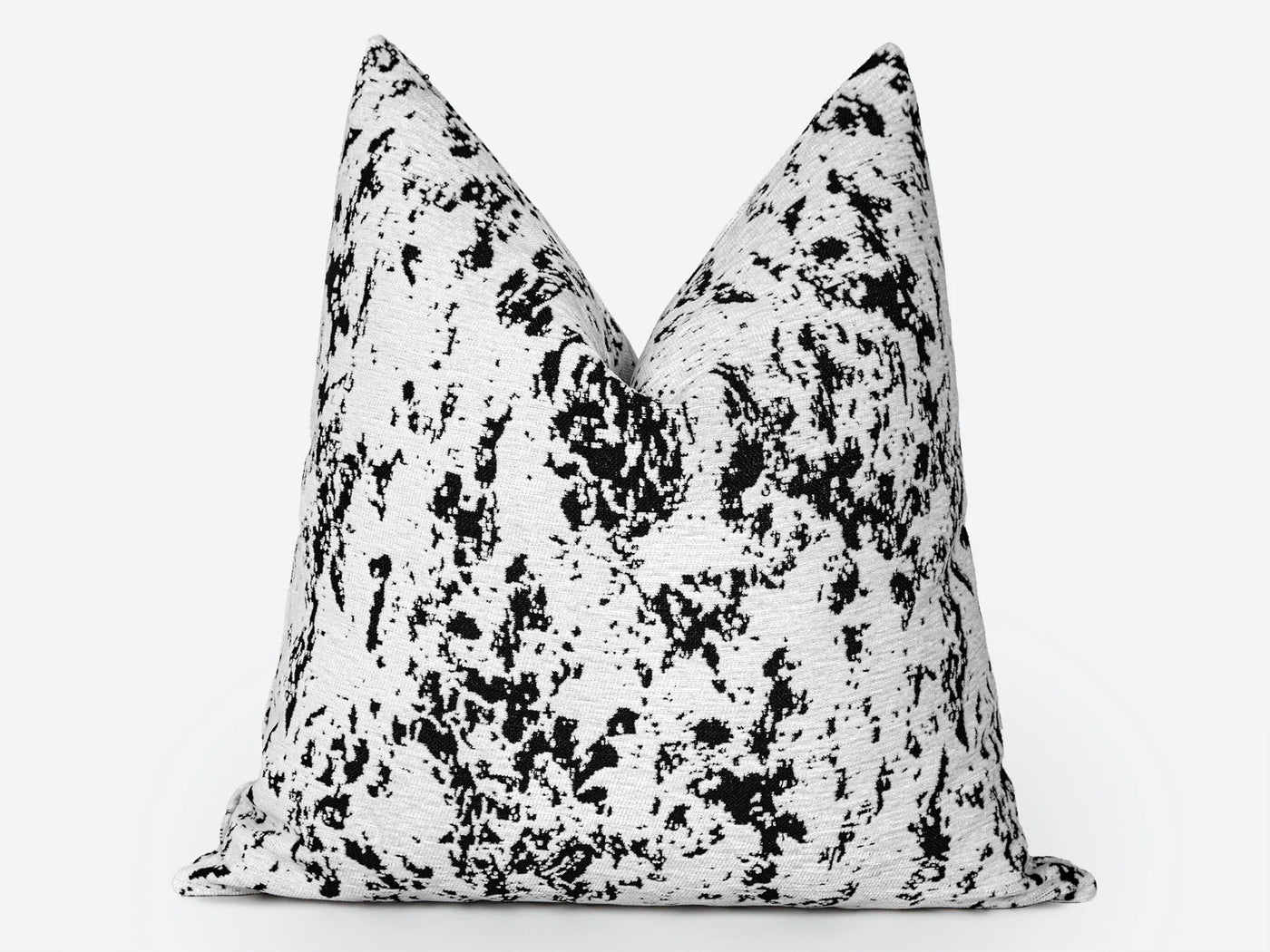 ✨ Featuring an abstract marble-inspired pattern in white with subtle black detailing, this pillow cover brings a modern, artistic touch to your space.
